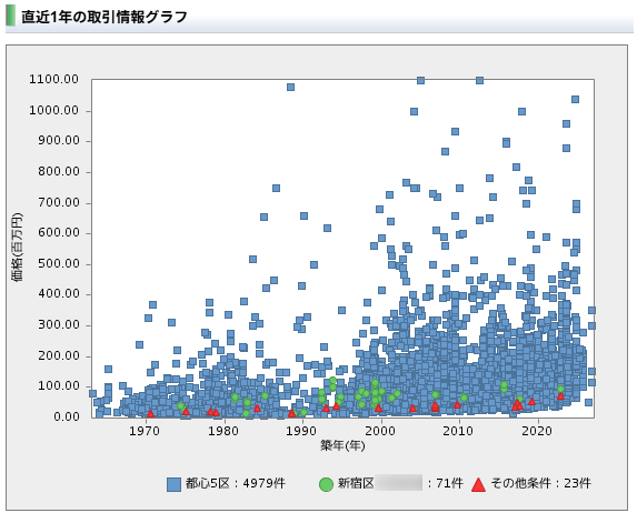→ 同じ面積でも築浅の方が単価が高くなる傾向があり、相場の理解が深まります