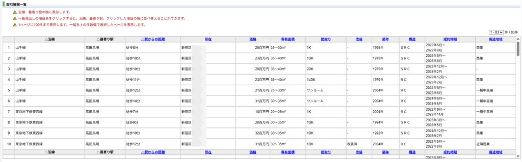 一般の人でも無料で利用でき、過去に実際に成約した取引事例(成約価格・面積・築年数など)が公開されています