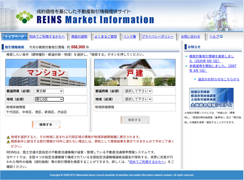 不動産取引情報提供サイト(マンション・戸建住宅の売買価格・相場・取引事例の情報公開サイト)